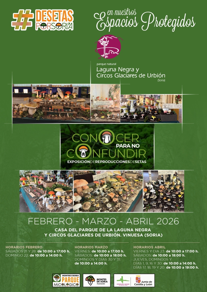 DE SETAS POR SORIA EN NUESTROS ESPACIOS PROTEGIDOS 2026 – EXPOSICIÓN CONOCER PARA NO CONFUNDIR EN CASA DEL PARQUE LAGUNA NEGRA Y CIRCOS GLACIARES DE URBIÓN (VINUESA).
