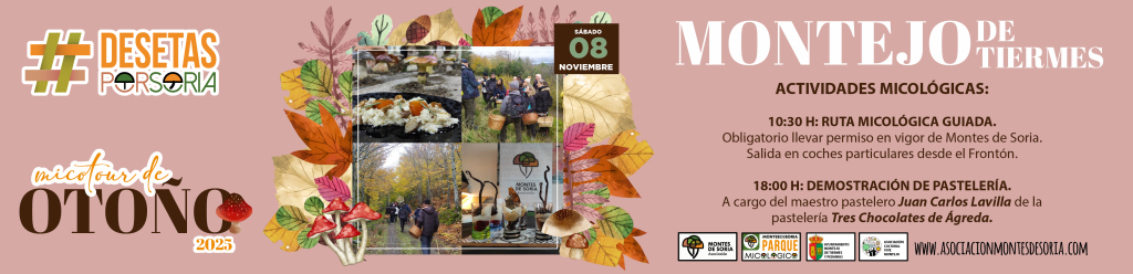Descubre «# De Setas por Soria – Montejo de Tiermes 2025 – Micotour de Otoño». Disfruta de la Ruta micológica y Demostración de Pastelería Micológica que vamos a llevar a cabo en esta preciosa localidad. No te quedes sin participar, disfruta de todo lo que hemos planificado para este fin de semana.