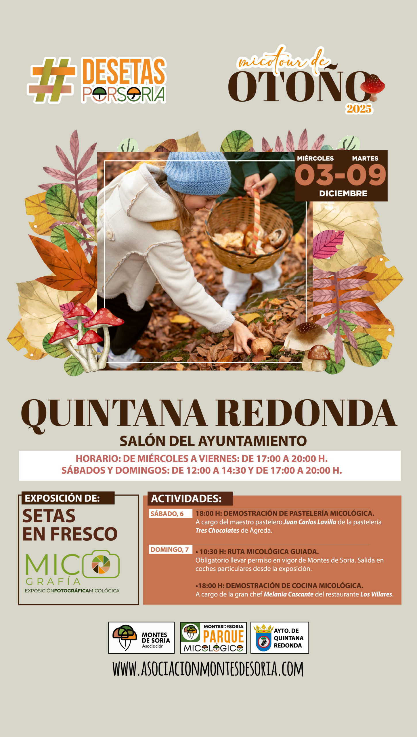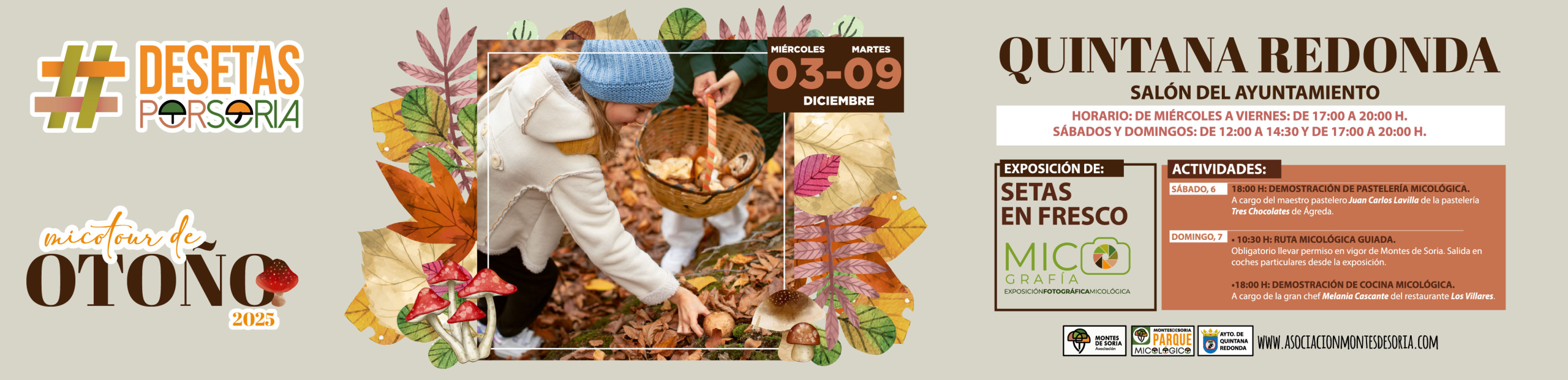 Descubre «# De Setas por Soria – Quintana Redonda 2025 – MicoTour de Otoño». Visitamos Quintana Redonda con nuestra exposición micológica itinerante, llena de sorpresas para todos los públicos.